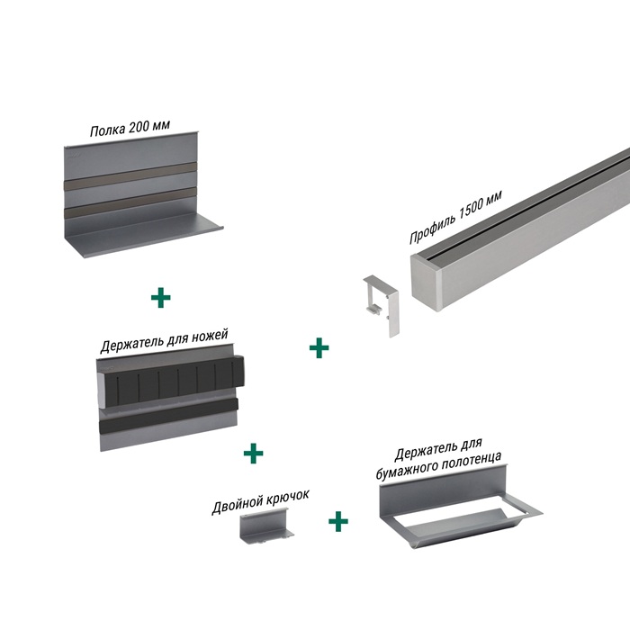 КОМПЛЕКТ №1, ЛинероМозаик 1500 мм, цвет АНТРАЦИТ (2722049846) | Рейлинги для кухни | купить в интернет-магазине кухонной фурнитуры kesse.ru в Москве