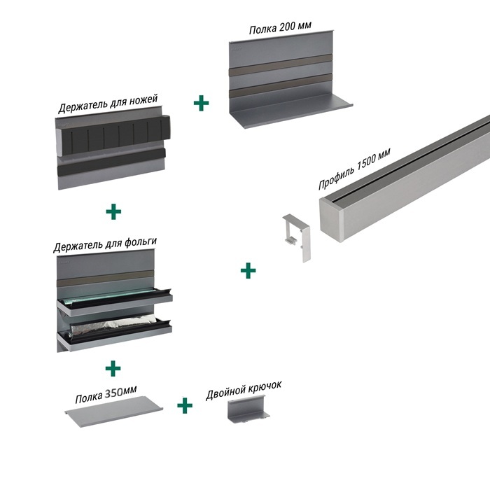 КОМПЛЕКТ №1, ЛинероМозаик 1800 мм, цвет АНТРАЦИТ (2722069846) | Рейлинги для кухни | купить в интернет-магазине кухонной фурнитуры kesse.ru в Москве
