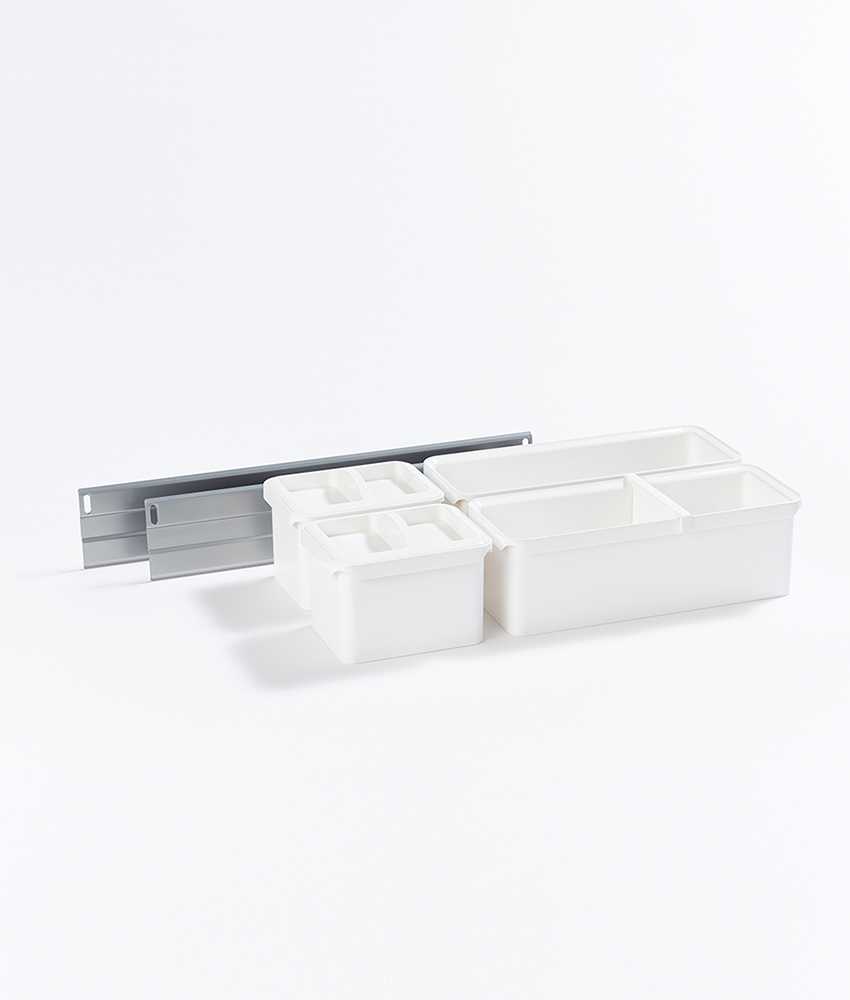Система хранения Юбокс состоит из разнообразных контейнеров, которые можно приспособить для хранения, ножей, специй, бутылок масла, специй, соусов. У Вас всегда есть возможность установить контейнеры в удобном для Вас порядке и на комфортной высоте. Все контейнеры крепятся на рейке, Вы можете расположить их согласно вашим потребностям.