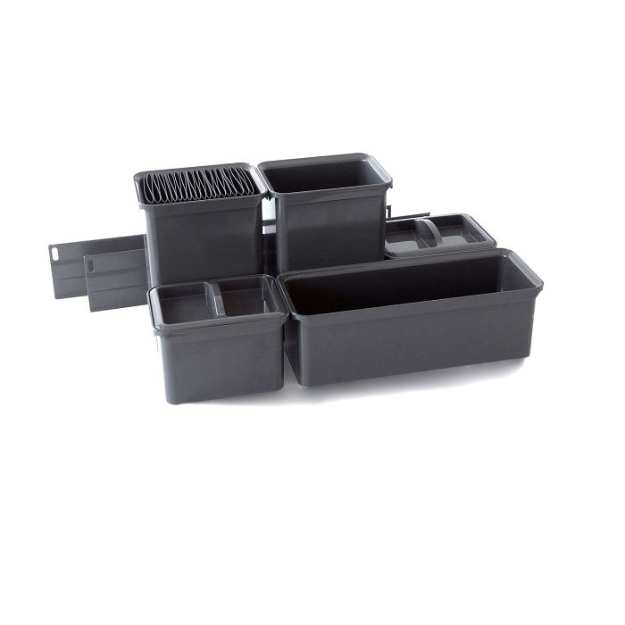 Система хранения Юбокс состоит из разнообразных контейнеров, которые можно приспособить для хранения, ножей, специй, бутылок масла, специй, соусов. У Вас всегда есть возможность установить контейнеры в удобном для Вас порядке и на комфортной высоте. Все контейнеры крепятся на рейке, Вы можете расположить их согласно вашим потребностям.