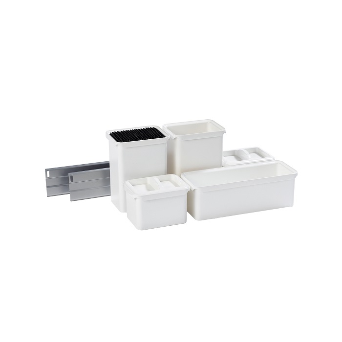 Система хранения Юбокс состоит из разнообразных контейнеров, которые можно приспособить для хранения, ножей, специй, бутылок масла, специй, соусов. У Вас всегда есть возможность установить контейнеры в удобном для Вас порядке и на комфортной высоте. Все контейнеры крепятся на рейке, Вы можете расположить их согласно вашим потребностям.