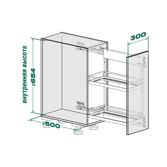 КОМПЛЕКТ левый, Комфорт II 300 мм, H 654, Арена ПЬЮР, 2 полки + полка для специй, цвет АНТРАЦИТ, цве 2977289846 | Выдвижные системы для кухни | купить в интернет-магазине кухонной фурнитуры kesse.ru в Москве