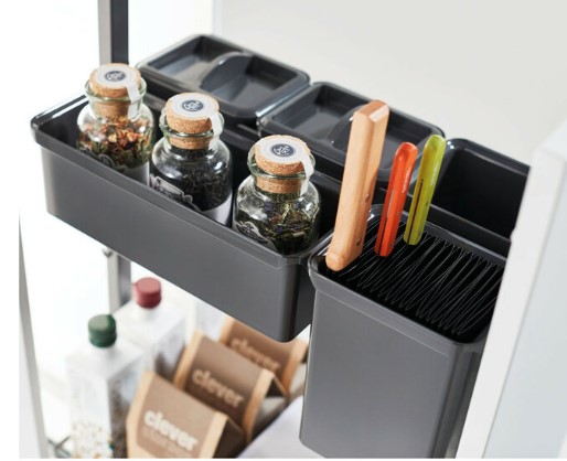 Набор состоит из разнообразных контейнеров, которые можно приспособить для хранения, ножей, специй, бутылок масла, специй, соусов. У Вас всегда есть возможность установить контейнеры в удобном для Вас порядке и на комфортной высоте. Все контейнеры крепятся на рейке, Вы можете расположить их согласно вашим потребностям.