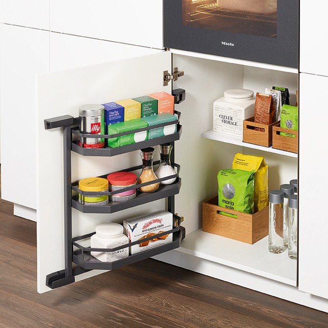 Механизм предоставляет невероятно быстрый доступ к самому необходимому, а регулируемые по высоте полки обеспечивают индивидуальный вариант использования.