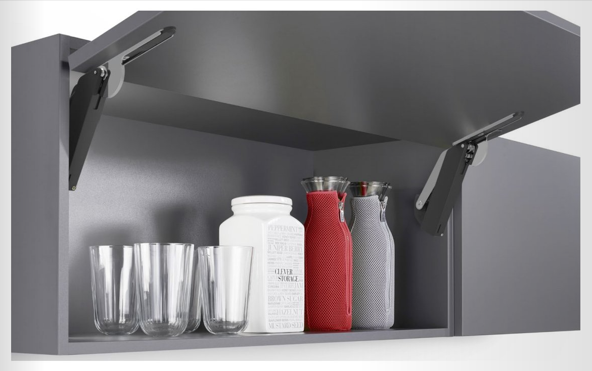 Механизм обеспечивает плавное и бесшумное открывание, закрывание и фиксацию фасада в любом положении.
