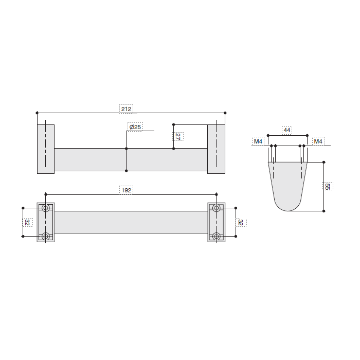 Ручка-скоба 192мм, отделка никель матовый шлифованный + сталь нержавеющая шлифованная 8.1101.0192.35-33 | Мебельные ручки | купить в интернет-магазине кухонной фурнитуры kesse.ru в Москве