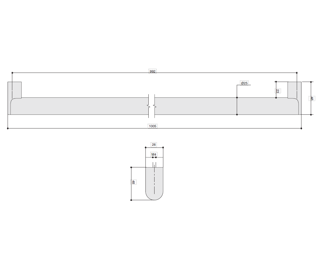 Ручка-скоба 992мм, отделка никель матовый шлифованный + сталь нержавеющая шлифованная 8.1060.0992.35-33 | Мебельные ручки | купить в интернет-магазине кухонной фурнитуры kesse.ru в Москве
