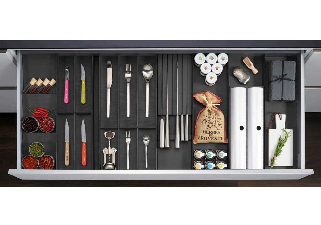 Вы можете организовать отдельные места для хранения ножей, специй, рулонов