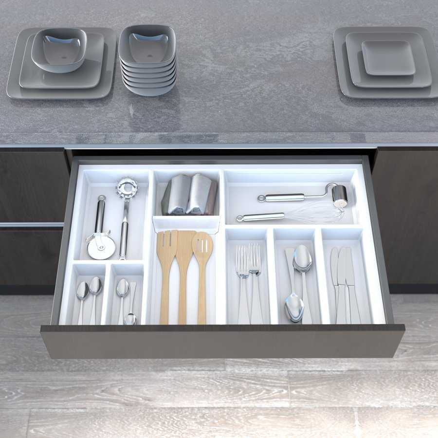 Лотки для приборов не требуют специального ухода: для удаления загрязнений их достаточно протирать влажной тряпкой или губкой. В качестве дополнительных аксессуаров предлагаем комплекты разделителей для лотков, которые позволят организовать систему хранения под индивидуальные потребности.