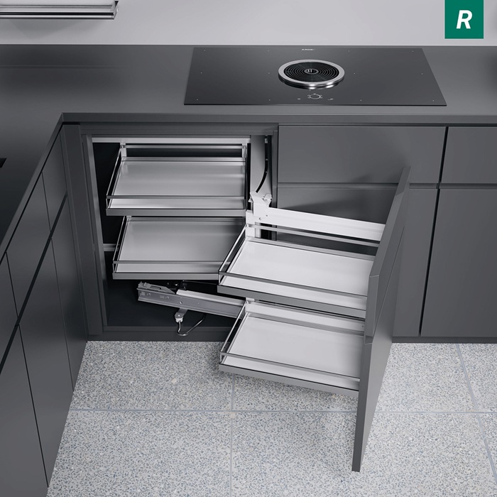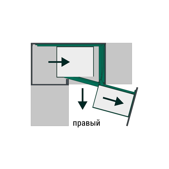 Волшебный уголок - это поистине "волшебное" решение для Вашего шкафа! Одним движением руки фасад с полками выдвигается и отводится в сторону, тем самым даёт полный доступ к внутренним полкам. Таким образом, хранение в труднодоступных угловых шкафах становится комфортным.