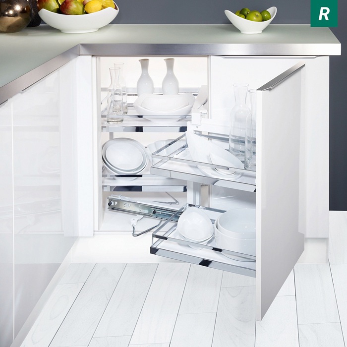 (Под заказ) КОМПЛЕКТ левый, Волшебный угол 450-600 мм, H 525, Арена СТИЛЬ, ХРОМ, 4 полки 3504070005 | Выдвижные системы для кухни | купить в интернет-магазине кухонной фурнитуры kesse.ru в Москве