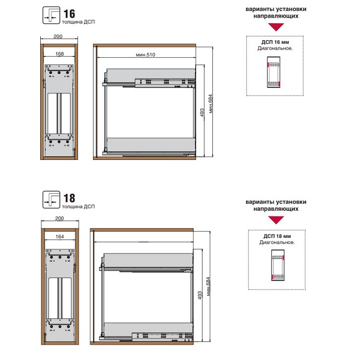 Корзины в базу 200 в этой серии представлены как под 16 ДСП, так и под каркасы, выполненные из панелей 18 мм. Главное отличие корзин TWINS от всех аналогичных, присутствующих на рынке решений, - это монтаж на диагонально расположенные направляющие. Такой вид крепления направляющих к корзине существенно повышает стабильность ее работы.Также корзины имеют крепления фасада с 3D-регулировкой.