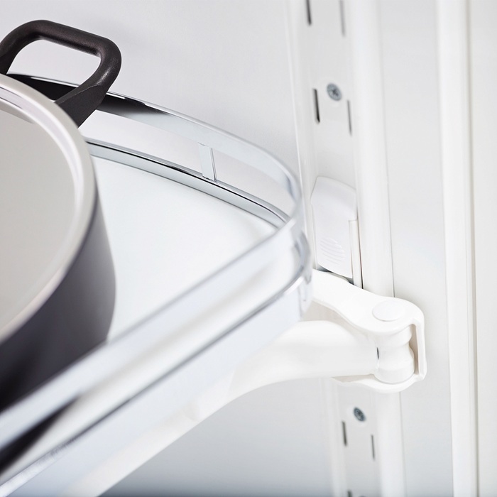 Каждая полка позволяет выдержать нагрузку в 25 кг, а благодаря регулировке высоты, любая высокая кастрюля находит свое оптимальное пространство для хранения и всегда остается в прямом доступе.