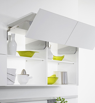 Удобством. Просто открывать и закрывать даже тяжелые дверцы и ящики, расположенные на высоте. Это особенно актуально для верхних шкафов.