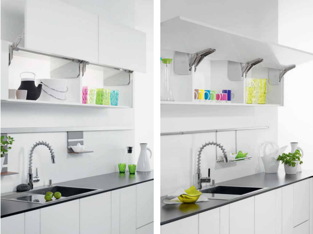 Дверцы подъемные. В кухонных столах-трансформерах или в выдвижных столешницах они поднимают и опускают столешницу плавно и безопасно.
