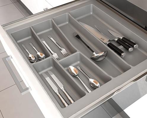 Хорошо, если разделители регулируются – это позволяет при необходимости менять конфигурацию, когда набор столовых приборов расширяется или изменяется. Поддерживать порядок в такой системе проще, поскольку каждый предмет получает свое фиксированное место.